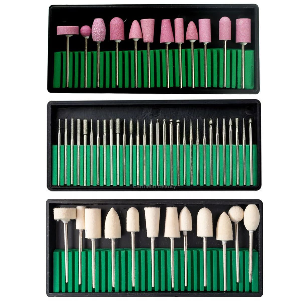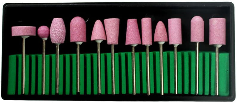 - 12 FREZÓW PIASKOWYCH-KAMIENNYCH– zestaw wykonany z obrobionego kamienia, a dokładniej tlenku glinu, o średniej ziarnistości. Frezy mogą być wykorzystywane zarówno na sucho, jak i na mokro. Doskonale sprawdzają się do obróbki manicure, pedicure oraz w podologii; komplet jest wielokrotnego użytku;