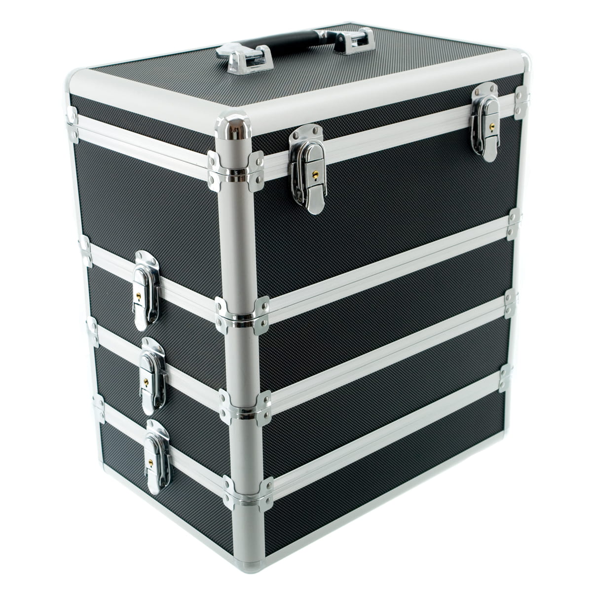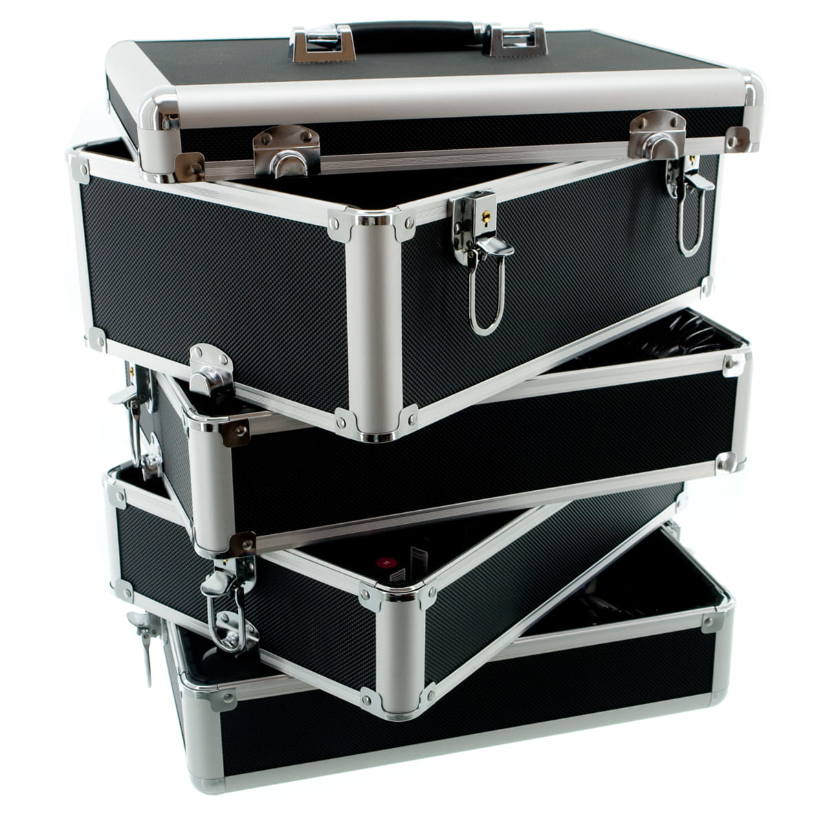 Czteroczęściowy kuferek kosmetyczno-fryzjerski na akcesoria i do przechowywania kosmetyków.