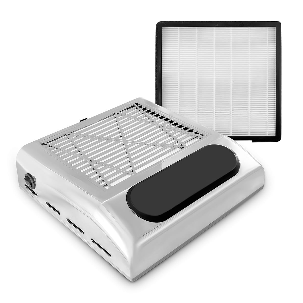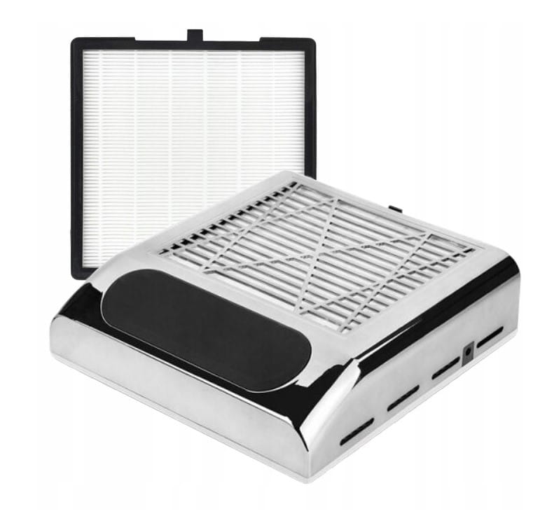 Urządzenie wyposażone jest turbinę ssącą o bardzo dużej wydajności dzięki temu pył z paznokci trafia bezpośrednio do specjalnego filtra, który uniemożliwia wydostanie się go na zewnątrz. Kratka wykonana jest z wysokiej jakości stali szlachetnej a kasetowy filtr do pyłu specjalnej bibuły filtracyjnej.