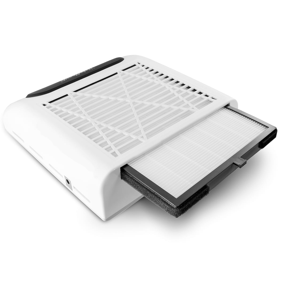 Zastosowanie filtru z bibuły filtrującej oraz wydajnej turbiny zasysającej w pochłaniaczu sprawia, że 99% pyłu po zabiegach manicure i pedicure nie osiada na silniku ani nie wydostaje się na zewnątrz urządzenia, zapewniając dzięki temu czystość w miejscu pracy oraz dłuższą żywotność niezbędnika. Ponadto utrzymanie w czystości wbudowanej kratki z wysokiej jakości stali szlachetnej i wymiennego filtru nie wymaga wysiłku. Produkt nie wytwarza dużego hałasu podczas pracy, jego obsługa jest prosta i wygodna, a antypoślizgowe podkładki zapewniają stabilność i komfort użytkowania. Elegancki wygląd i biały kolor pochłaniacza sprawia, że pasuje do każdego wnętrza.