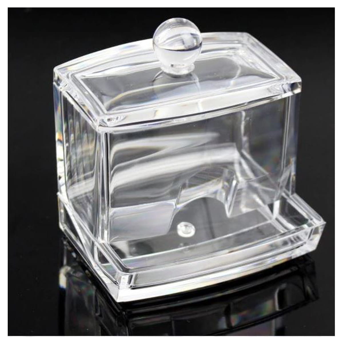 Wykonanie produktu z transparentnego akrylu pozwala nam na kontrolowanie stanu uzupełnienia patyczków. Otwierana pokrywa zakończona kulką nie tylko pięknie się prezentuje, ale również ułatwia otwarcie organizera.