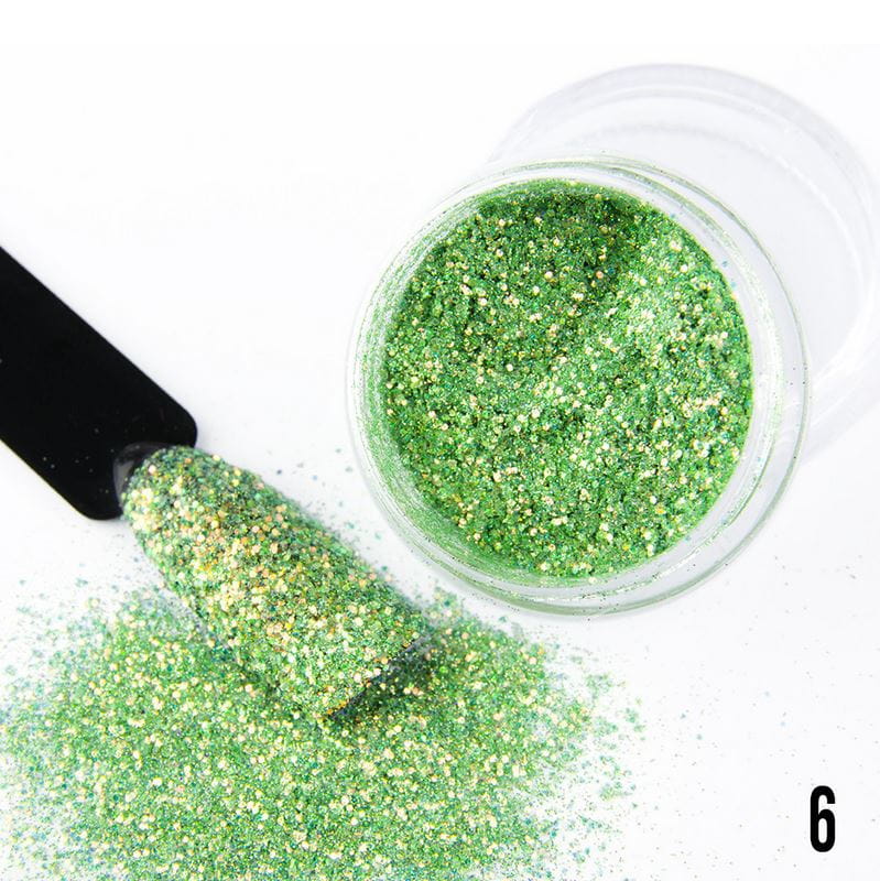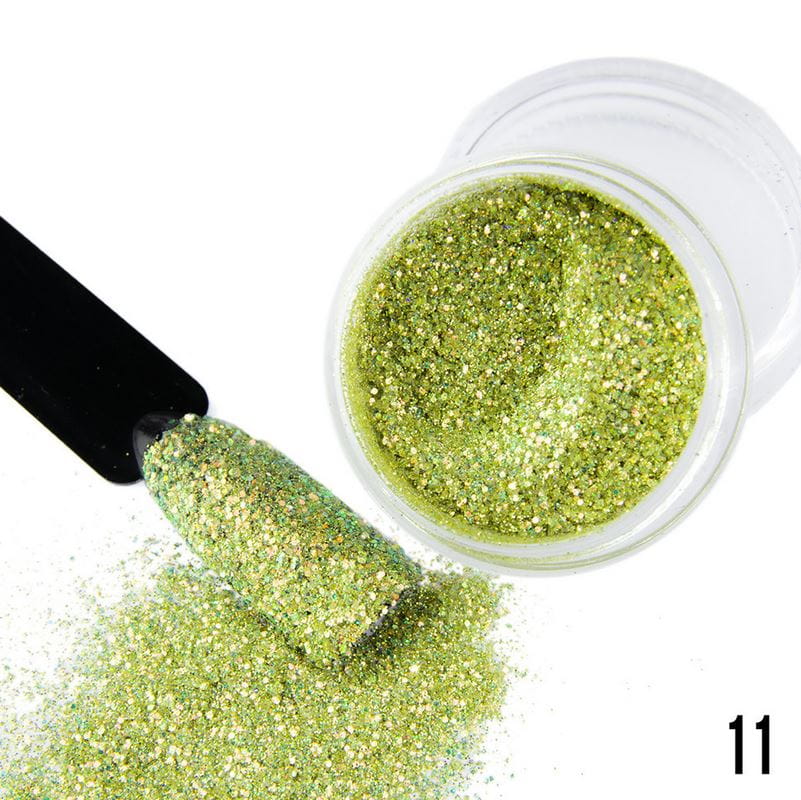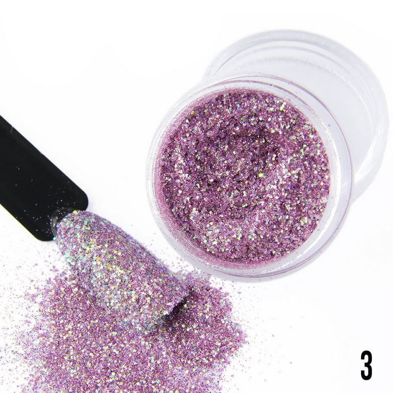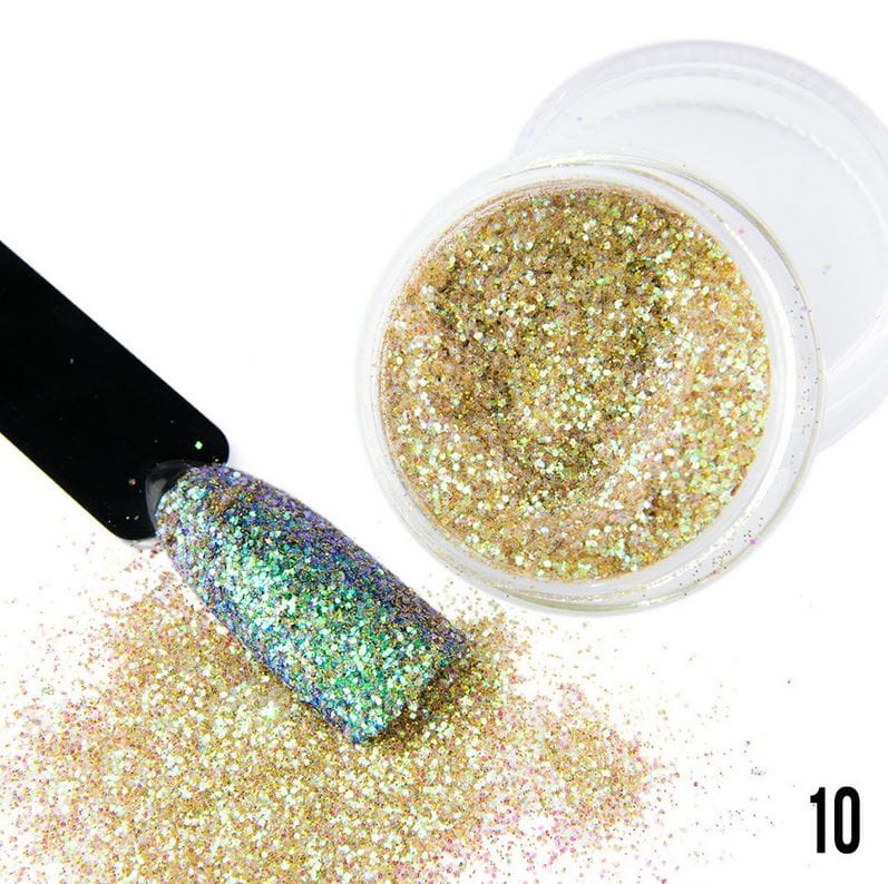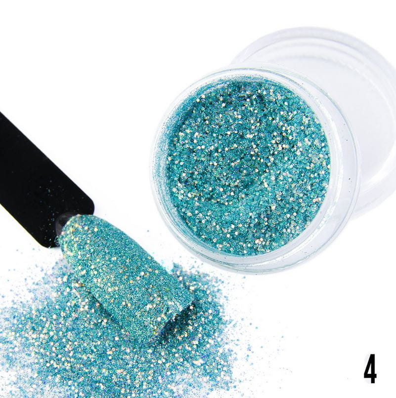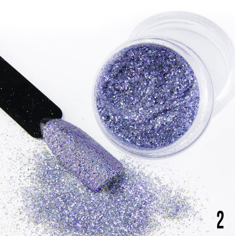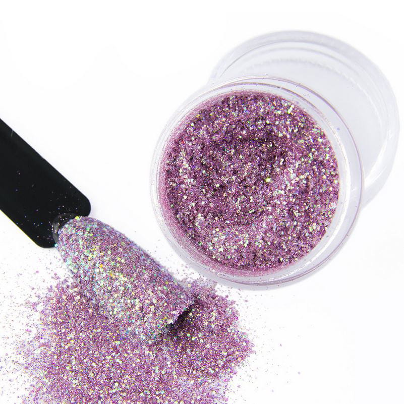 Połączenie drobniutkiego pyłku i grubszej drobinki stworzy bardzo ciekawy i połyskujący look każdej stylizacji. Zastosuj go na wszystkie paznokcie - jeśli jesteś odważna i nie boisz się mega błysku na swoich dłoniach czy stopach lub wykorzystaj go tylko do dodania akcentu w postaci wzoru lub np. jednego paznokcia.