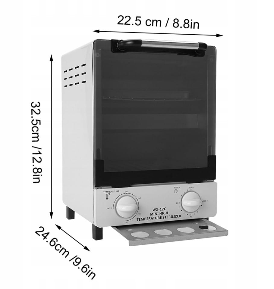 Sterylizator zaprojektowany do dezynfekcji narzędzi, akcesoriów kosmetycznych i medycznych gorącym powietrzem o bardzo wysokiej temperaturze.