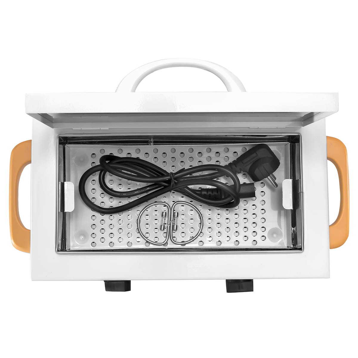 - Pojemność 1,5 l, która pozwala sterylizować małe przedmioty, takie jak metalowe pojemniki i narzędzia kosmetyczne (np. cążki).